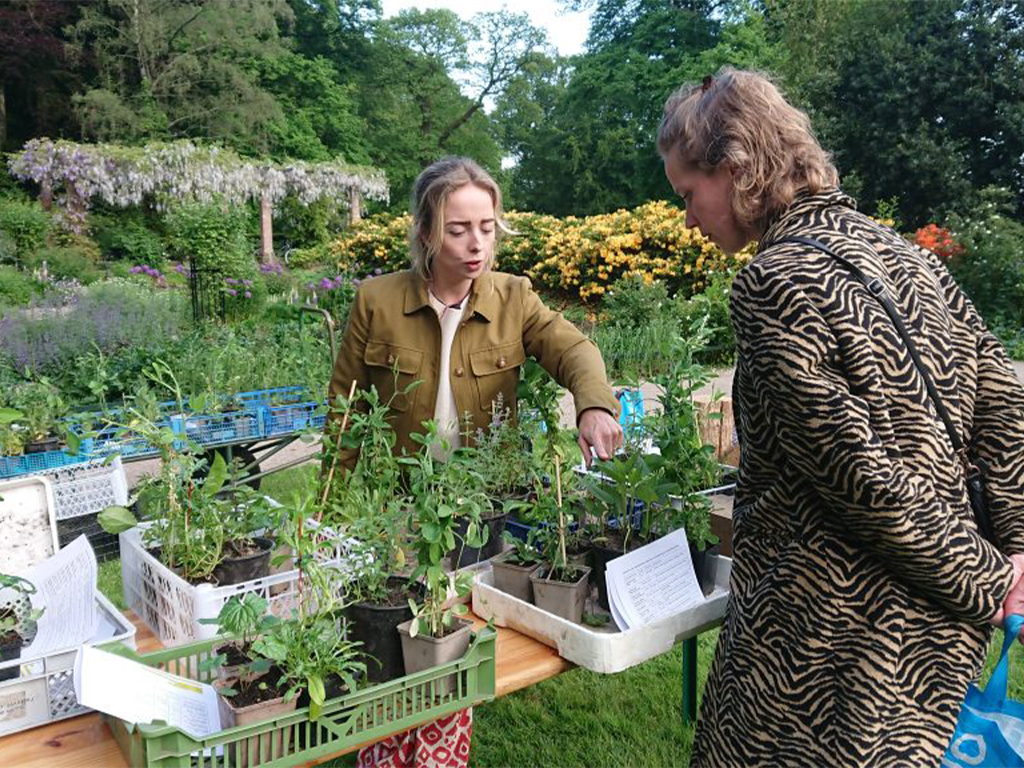 De rest van de planten komt van Hobbykwekerij Parkzicht. Jacqueline: “Ik doe dit samen met mijn zus. Zaaien, ompotten, verspenen, planten naar binnen, en dan weer naar buiten. Het is hartstikke leuk om te doen, maar wel heel veel werk. De organisatie en de distributie kunnen we er echt niet bij hebben, dus het is fijn dat we zo’n goeie samenwerking hebben met Angerenstein Toekomstbestendig. Ook leuk is dat we de planten in de kas van Landgoed Bronbeek mochten opkweken, dat is een heel mooie kas natuurlijk. Zelf hebben we alleen een kleine muurkas. Daar is geen ruimte om zo veel planten te herbergen.”