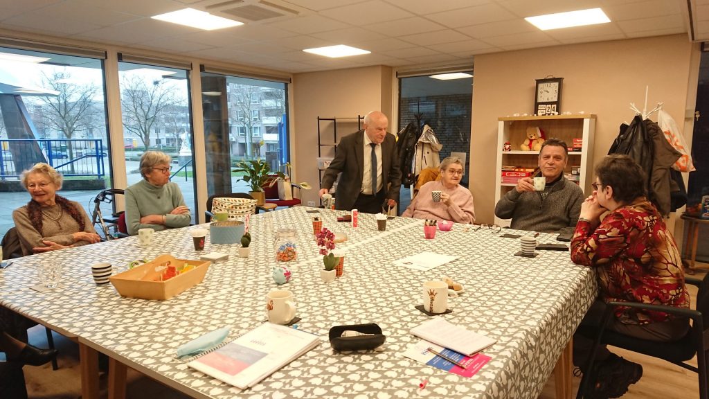 Mooie verhalen heeft Jos zeker, maar eerst gaat hij buurten met de andere bezoekers. Het is een drukte van jewelste op deze doodgewone dinsdagochtend in januari. “Ik heb nog nooit zo veel mensen bij elkaar gezien. We moeten uitbouwen!” grapt wijkbewoner Jan. De mensen uit de buurt weten de ontmoetingsruimte vanaf het allereerste begin goed te vinden, volgens Anja. “We gingen begin oktober van start, in de week van de eenzaamheid,” vertelt ze. “Op maandagochtend om negen uur kregen we de sleutel, om acht uur stonden we klaar met tafels, stoelen en koffie en om half tien deden we deuren open.”